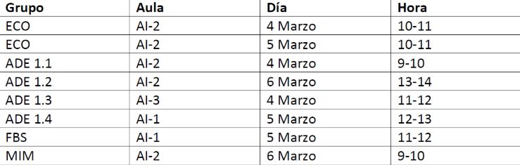 Las sesiones están dirigidas a los alumnos de dicha asignatura y se desarrollarán durante la semana del 4 al 6 de marzoen diversas aulas de informática (2ª planta Facultad de Económicas), según siguiente cronograma: