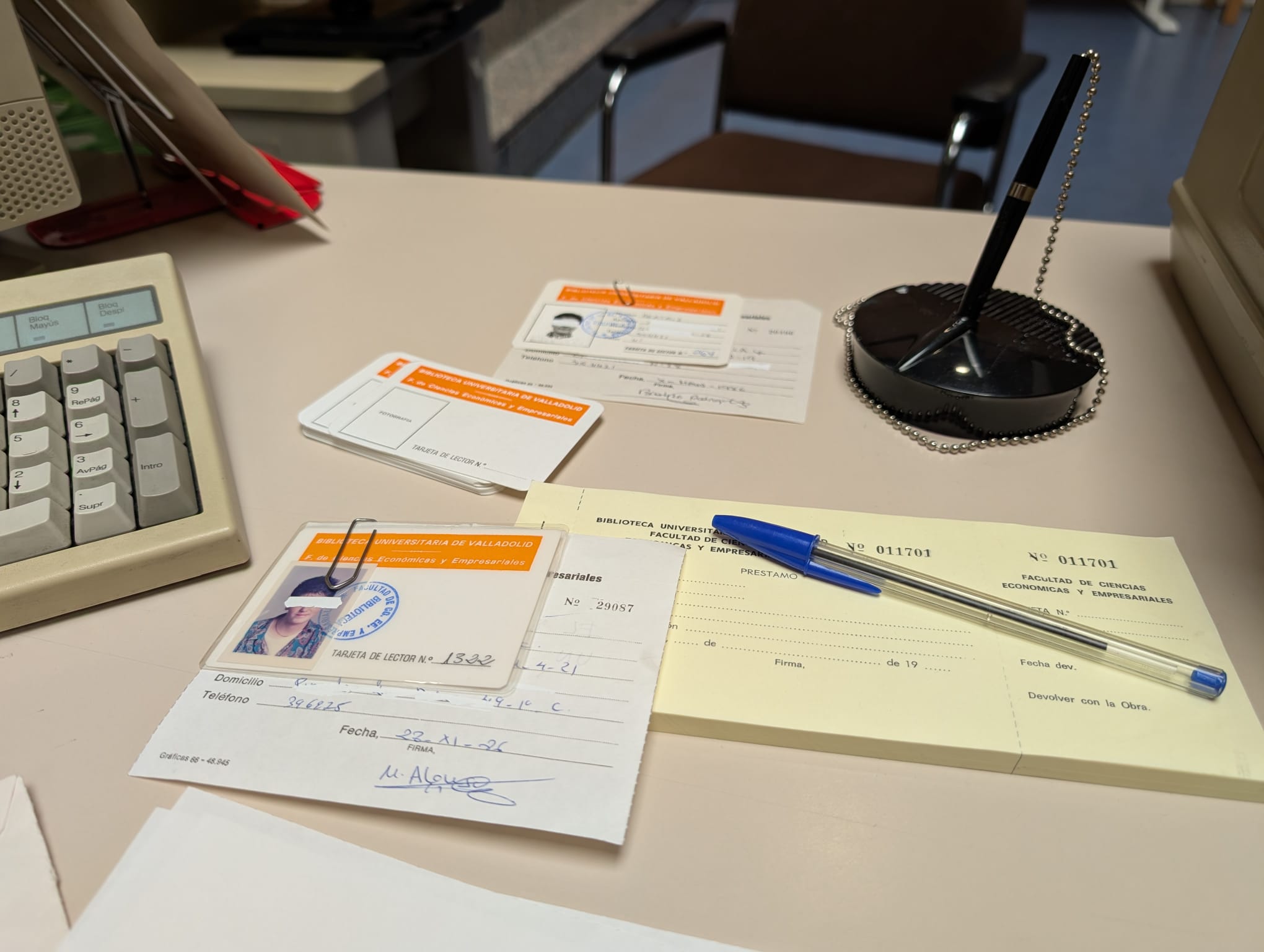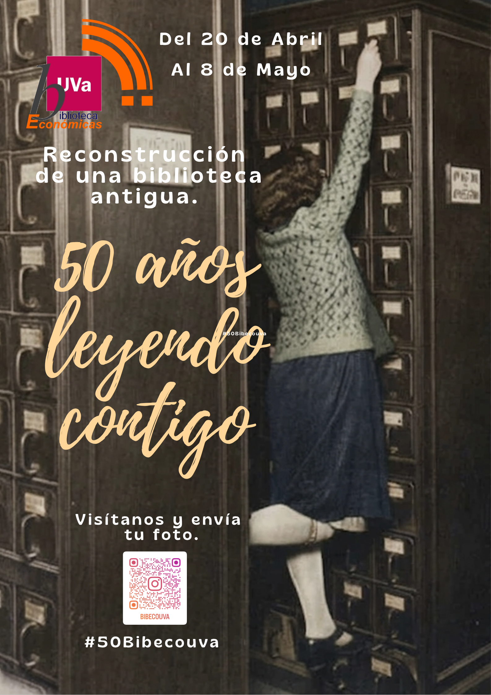 Por cierto, te invitamos a venir a verla del 20 de abril al 8 de mayo, a sentarte frente a una máquina de escribir o comprobar de cerca cómo era una máquina de microfichas o un contador de fotocopias. Ven a hacerte tu foto vintage, bien como usuario, como visitante o como bibliotecario y si quieres unirte a esta celebración, solo tienes que subir tu foto a Instagram con el hashtag #50Bibecouva.
